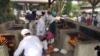 おやじの会キャンプが始まりました。写真は、開会式の様子です。恒例となった"祝砲...