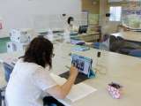 教職員も感染対策をしながら勤務しています。代表者が説明を聞き,学年に伝えるなど...