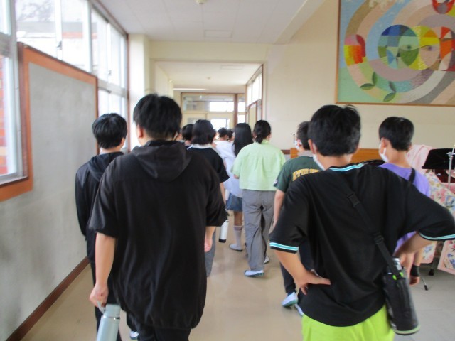 中学校では、生徒会の皆さんが校舎内を案内してくれ、さまざまな場所を見せてもらいました。実際に授業の様子を見学することもでき、中学校での学びの雰囲気を感じることができました。
