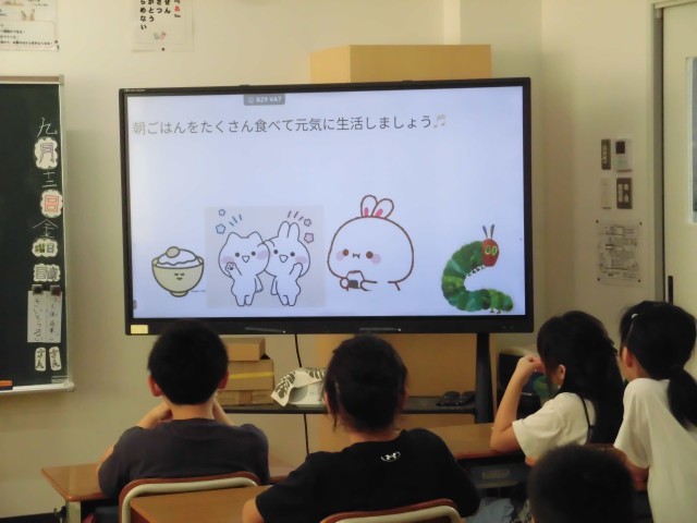 給食委員会では、朝ごはんの働きについてスライドを作成し、朝ごはんの大切さについて呼びかけをしました。また、1日を元気に過ごすための理想の朝ごはんをテーマに献立を考え、9月29日(月)の給食に登場します。朝ごはんの大切さを見直す機会になればと思います。