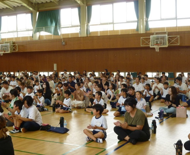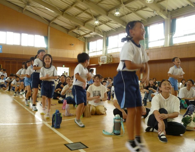 9月10日(水) 2年生が、矢代先生をお招きして親子活動のボディーパーカッションを行いました。リズム遊びを通して、身体全体を楽器に見立てて様々な音を表現しました。児童の中には、ステージに立ち、リズミカルな動きの見本を行ったり、2年生全員でリズムの良い音を作ったりすることができました。