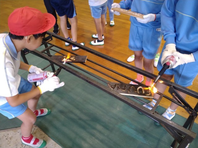 10月7日(火) 今日は、5年生の児童が待ちに待った宿泊学習1日目でした。水戸少年自然の家で、午前中に焼き杉板体験、午後はウォークラリーを実施しました。焼き杉板体験では、一人一人が工夫しながらオリジナルのプレートを作成することができました。ウォークラリーでは、地図を見ながらコースを歩き、グループで協力して問題に解答していました。豊かな自然に触れながら、楽しく活動することができました。