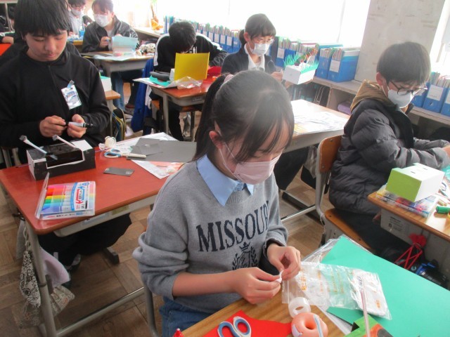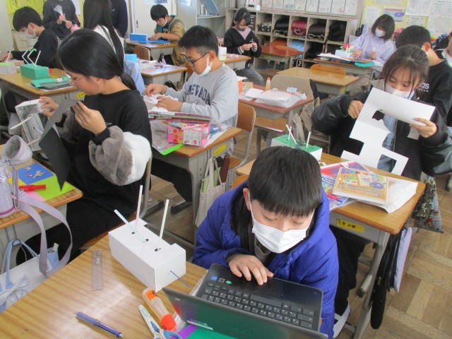 12月5日(金) 6年生が図画工作科の授業で「くるくるクランク」の作品制作を行いました。クランクの仕組みを利用して、回すと動く特徴を作品に取り入れながら、それぞれの考えたアイディアをいかしながら作品を制作していました。ウサギが跳びはねている様子、ヘビがクネクネと動いている様子等、楽しそうに作品づくりに取り組みました。