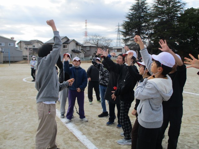 6年生がグラウンドにて、第2回目の学年レクレーションを行いました。今回の企画、運営は2組が担当しました。