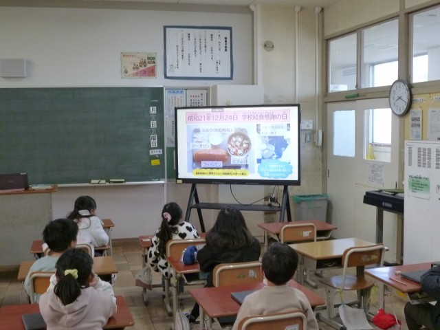 全国学校給食週間 公開日 2026/01/26 更新日 2026/01/26 2年生 1月26日(月) 全国学校給食週間のため、朝の時間に動画を視聴しました。給食の始まりや学校給食の目的などを知り、給食の大切さについて考えました。