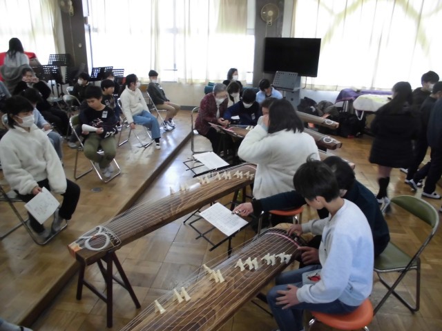 ひたちなか市邦楽連盟から6名の講師の方が来校してくださりました。各学級ごとに丁寧に演奏指導をしていただきました。