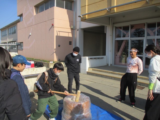 2月15日(日) 春の陽気のような天気に恵まれる中、もちフェスが開催されました。開会宣言の後、低学年・中学年・高学年に分かれてイベントにチャレンジしました。もちつき体験をしたり、50m走の記録測定をしたり、的当てをしたりしました。どのイベントにも子供たちの笑顔があふれ、楽しく取り組んでいました。最後に50m走の上位者が代表選手となってリレー対決が行われました。今年のもちフェスも、竹の会のお父様方やPTAの方々のご協力のおかげで楽しいイベントとなりました。イベントの企画運営、ありがとうございました。