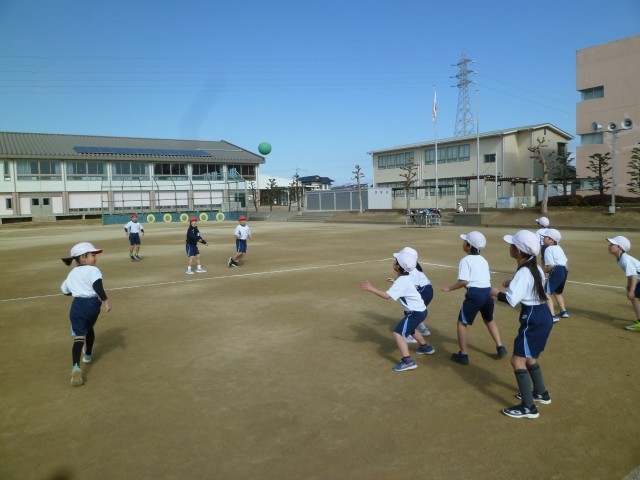 2月20日(金) 2時間目に縄跳びの練習をした後、ドッジボールを行いました。途中からボールを1つ増やしたり、チームを交換したりして、児童は楽しく元気に活動することができました。