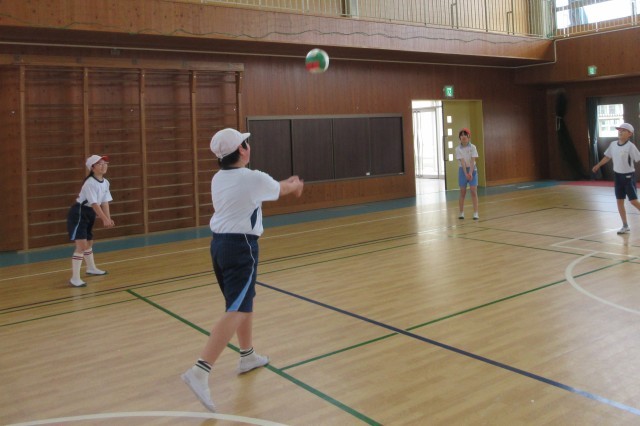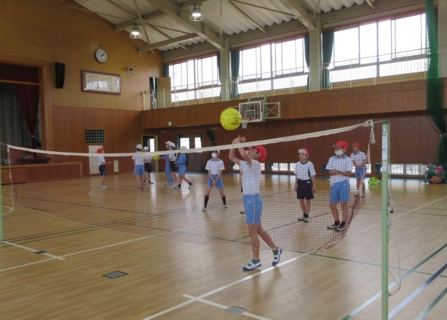 2月26日 体育の授業でソフトバレーボールを行いました。友達と輪になってボールを落とさないようにつなぐために、協力して声を掛け合いました。子どもたちは、「スパイクを打ってみたい。」「もっと試合がしたい。」と意欲的な姿が見られました。