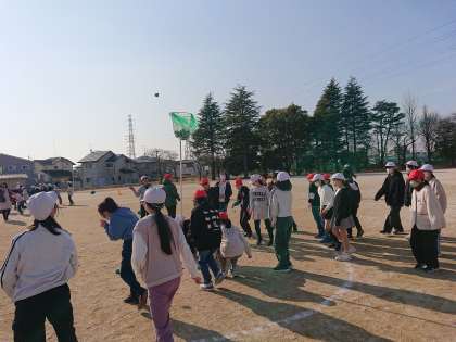 1月24日(金)の5校時目に、6年生の卒業式実行委員の思い出作り担当の児童が中心になって、学年レクリエーションを行いました。2回目となるレクは、1年生の運動会に行った「チェッコリ玉入れ」です。1年生の時の思い出を思い出しながら、ダンスと玉入れを楽しみました。