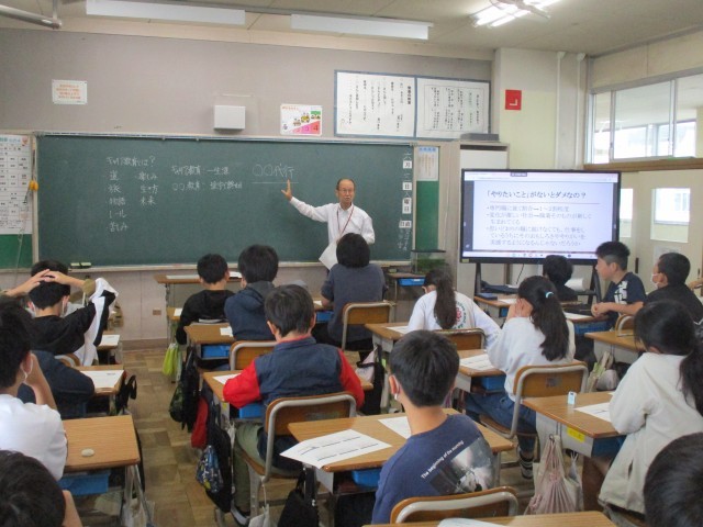 6月3日(火) 市教育研究所学級経営アドバイザーの塙克也先生が来校し、6年生がキャリア教育とはどんな学習なのか学びました。まず塙先生が「キャリア教育とは人生という長い○○○をどう歩んでいくのかを考える教育」という課題を提示され、子供たちは○○○の中に入る言葉を考えました。「道のり」「物語」「楽しみ」など素敵な言葉を考え、いろいろな意見が出ました。その後、法政大学教授の児美川孝一郎先生の著書「自分のミライの見つけ方」の内容を説明してくださり、将来の職業選択に向けてのヒントとなる話をしてくださいました。6年生はどんな将来を思い描くのか、これからの学習が楽しみです。
