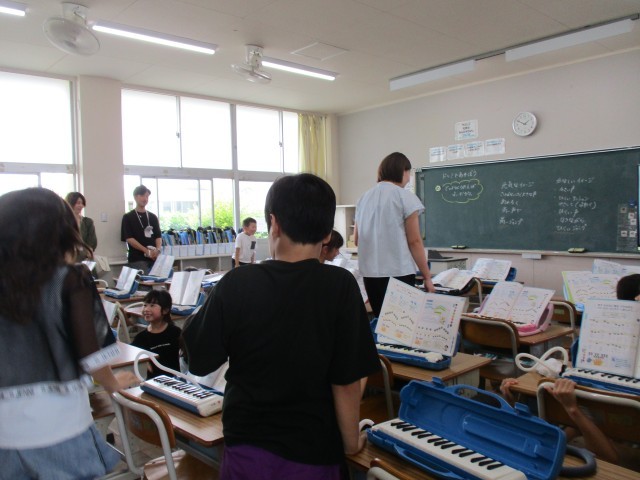 6月23日(月) 学校公開日で、5校時に1・2年生、6校時に3~6年生の授業公開が行われました。各クラス、たくさんの保護者の方々が参観してくださいました。音楽で鍵盤ハーモニカを演奏しているクラスや道徳の学習をしているクラス等、お家の方に日頃の頑張っている様子を見ていただきました。子供たちは、笑顔で活動していました。