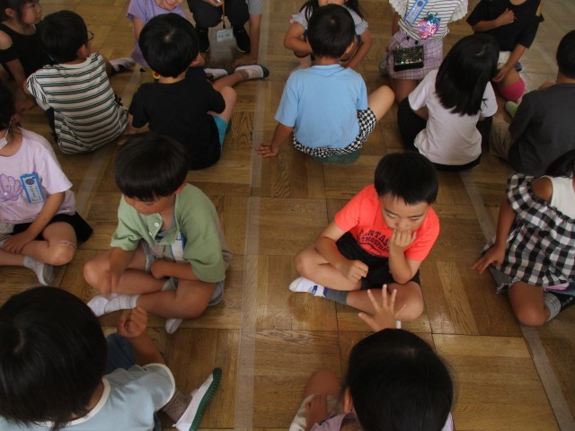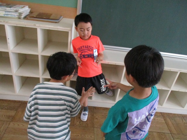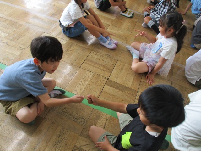 6月24日(火) 1年生が、教育研究所学級経営アドバイザ-の塙先生と一緒に学習しました。じゃんけんを活用して友達と交流しました。活動を始める前に、「友達のことは言わない」「先生や友達の話を最後まで聞く」という2つの約束をしました。じゃんけん王様と質問じゃんけんの2つの活動に取り組みました。質問じゃんけんでは、じゃんけんに勝った人が負けた友達に好きな色や好きな食べ物、好きなゲームなどを質問してとても盛り上がりました。ルールを守ってみんなで楽しく活動をした子供たちはとても良い表情をしていました。