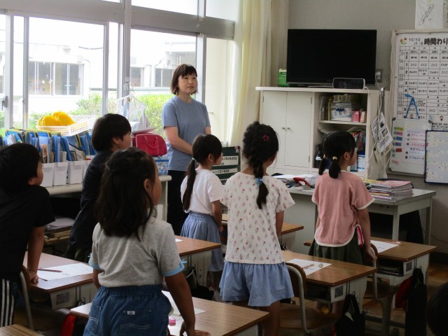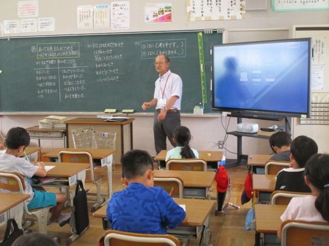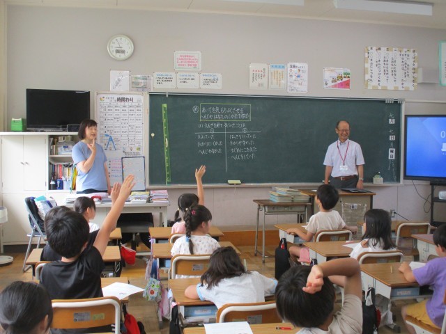 7月7日(月) ひたちなか市教育研究所の学級経営アドバイザーである塙克也先生を迎えて、2年生が「相手を気持ちよくさせる返事や話し方」について学習しました。担任の先生と塙先生の会話の演技から、気持ちのよい返事や話し方はどのような姿なのか考えたり、すぐに話ができないときはどのように返事をしたらよいか話し合ったりしました。学習を終えた後の振り返りには、「返事や話を楽しくできました」「相手の気持ちがよく分かりました」「すぐに返事ができないときにどう伝えればよいか分かりました」「楽しく授業ができたのがうれしかったです」「今日学んだことをいろいろなときに使いたいと思います」などが書かれていました。返事の仕方や話し方を具体的に学習することができ、生活や学習で発揮できる学びになりました。