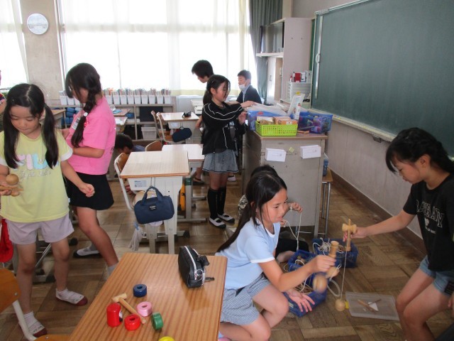 7月9日(水) 4・5・6年生が楽しみにしているクラブ活動が行われました。理科クラブではスライムづくり、ゲームクラブでは将棋やチェスなど好きなゲームにチャレンジしていました。コンピュータクラブでは、コマ送りのアプリを活用してオリジナルのアニメーションづくりを工夫しながら取り組んでいました。昔遊びクラブでは、だるま落としやけん玉など新しい技に挑戦していました。どのクラブでも自分の好きなことに夢中になって活動している児童がたくさんいました。