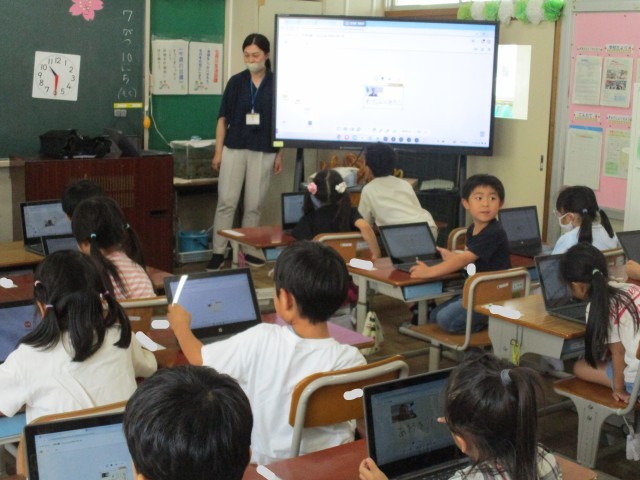 1年生 オリジナルカードづくり 公開日 2025/07/10 更新日 2025/07/10 1年生 7月10日(木) 1年生がICTサポーターの先生と一緒にタブレットの使い方を学習しました。オクリンクプラスを活用して「オリジナルカードづくり」をしました。タブレットを使って自分の顔の写真を撮ったり、自分の名前を書いたりするなどして、楽しくカードづくりに取り組みました。1年生にとって初めて写真機能を活用しましたが、説明を聞きながら上手にカードを作成することができました。
