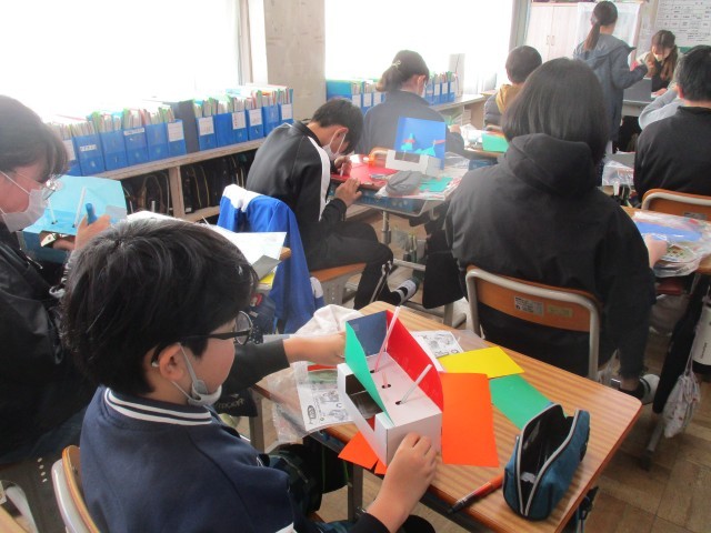 12月5日(金) 6年生が図画工作科の授業で「くるくるクランク」の作品制作を行い...