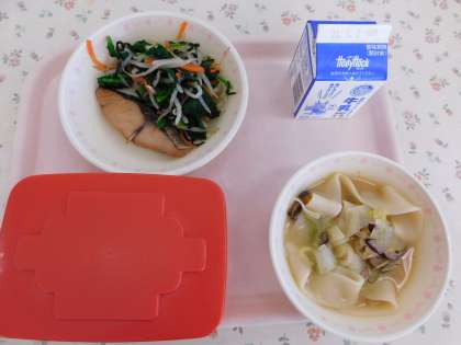 【こんだて】 ・ごはん ・ぎゅうにゅう ・ぶりのゆうあんやき🐟 ・いそかあえ ・ほうとう