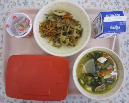 【こんだて】 ごはん ぎゅうにゅう なっとう にあい とんじる