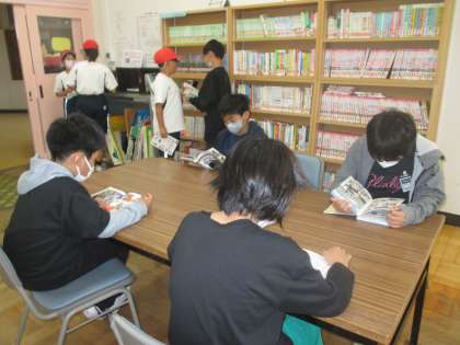 雨が降っている日は、図書室で落ち着いて生活しています。