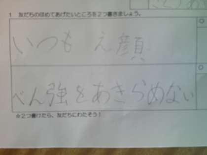 相手のいいところをみつけ合いほめ合っています。