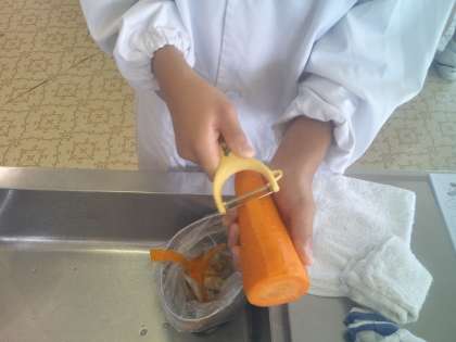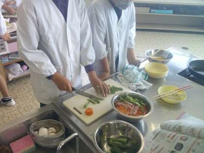 6年生は、調理実習で、「いろどりいため」と「スクランブルエッグ」を作りました。