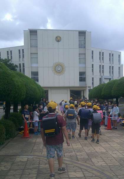 とっても元気な5年生・3年生のあいさつボランティア隊が雨を吹き飛ばす大きな声でたくさんのあいさつをしました。