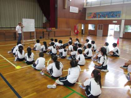 学級活動でじゃんけんサッカーをしました。サッカーのように守るチームと攻めるチームに分かれ、ボールの代わりにじゃんけんをし、勝ち進むと得点が入ります。みんなで仲良く楽しく活動することができました。