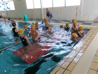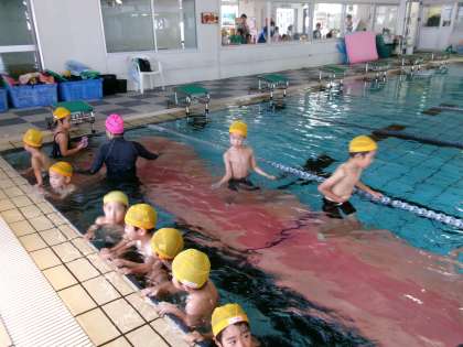 スイミングスクールの先生の話をよく聞いて、安全に楽しく学習しました。