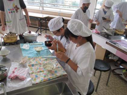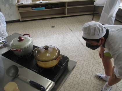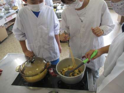 5年生が調理実習で、ご飯とみそ汁を作りました。