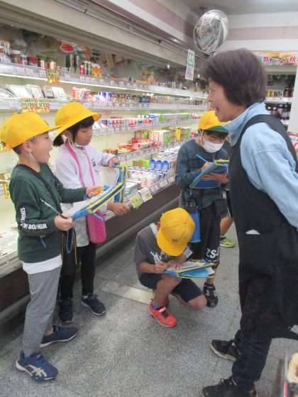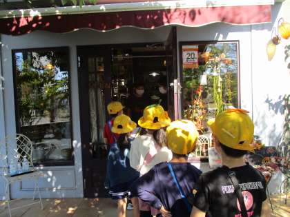 気持ちの良い秋晴れの中、地域の施設やお店にご協力いただき、町探検に行ってきました。子どもたちは自分で希望した施設へ見学へ行きました。実際にお店や施設の方のお話を聞いたり、売っているものを見たりして充実した体験ができました。保護者ボランティアの方のご協力ありがとうございました。