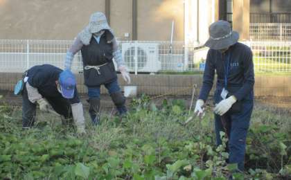 さくランボランティア隊員の協力を得て、サツマイモのつる切りを放課後行いました。
