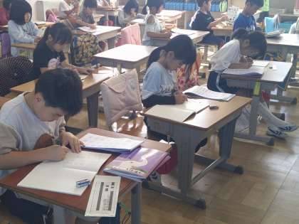 ドリルを使って自主学習をしたり、新出漢字を学んだりしていました。