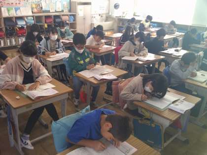ドリルを活用して自主学習を進めたり、漢字ミニテストをしたりしていました。