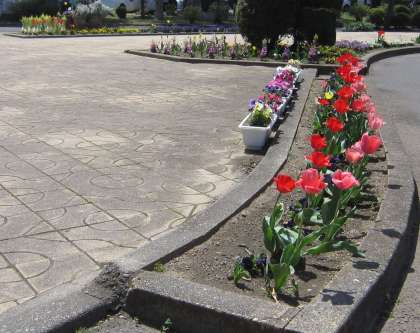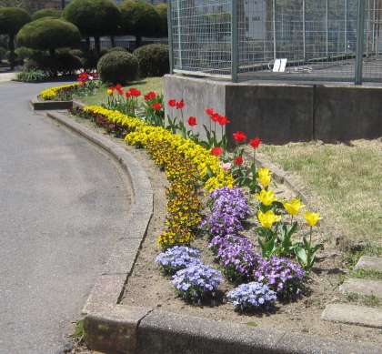 暖かな日差しのもと咲く花々