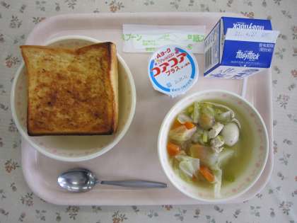 ・フレンチトースト ・ぎゅうにゅう ・やさいのスープに ・ヨーグルト