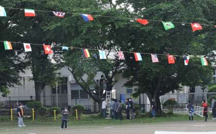 親父の会のみななさ,朝早くから万国旗の設置ありがとうございます。後片付けのご協力ありがとうございました。
