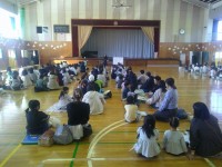 朝の会では、「にじの会」の皆さんが読み聞かせを行ってくれました。子供たちは、こ...