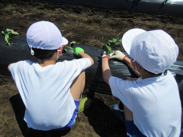 地域の方のご協力を頂きながら、畑をお借りして6月にさつまいもの苗(紅あずま)を植え10月に収穫しています。