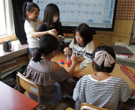 9月に入っても猛暑が続き高温のため、休み時間は外での遊びは控え、子供たちは教室等で、絵を描いたり、折り紙を折ったりしながら過ごす姿が見られました。完成した絵や作品を友達に見せ合ったり、おしゃべりしたりする子供たちの声が、教室を明るくしていました。図書室では、静かに本の世界に入り込む子供たちがいました。真剣なまなざしでページをめくる子や、「この本おもしろいよ」と友達に紹介して、にこやかに会話をする姿もありました。暑さの厳しい日でも、子供たちは工夫しながら休み時間を過ごしています。