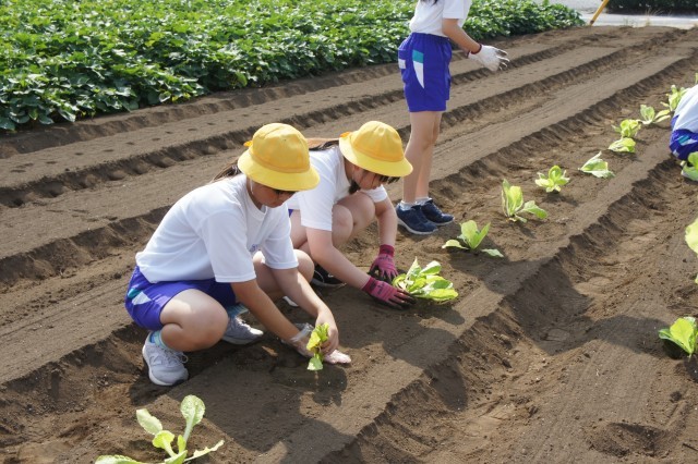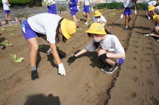 白菜の苗植え、大根の種まきを行いました。