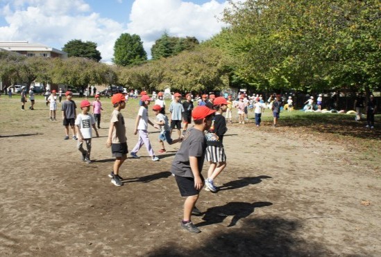 なかよし班の活動がありました。なかよし班は、1年生から6年生までが一緒になって活動する、異学年交流の取り組みです。今回は、班ごとに「ドッジボール」「おにごっこ」「だるまさんがころんだ」などの遊びをしました。高学年の児童がリーダーとなって進行し、低学年の児童にルールを分かりやすく伝えていました。みんなで声をかけ合いながら楽しむ姿が見られ、とても和やかな時間となりました。異学年で活動することで、上の学年は下の学年を思いやり、下の学年は安心して活動に参加することができます。これからのなかよし班の活動も、楽しく進めていきたいと思います。