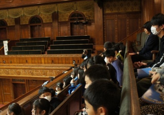 6年生が東京遠足に行きました。朝早くに学校を出発ました。最初に向かったのは、国会議事堂です。案内の方から、議員の皆さんが話し合う「本会議場」や、歴史のある建物のつくりについて説明していただきました。赤じゅうたんの廊下や、細かい模様の天井など、一つ一つに意味があることを知り、とても驚きました。少し大人になったような気持ちで見学することができました。北の丸公園でお昼を食べてから、次に訪れたのは科学技術館です。館内では、体を動かして楽しめる展示がたくさんあり、グループの友達と一緒に実験したり、装置を動かしたりして夢中になりました。体験しながら、科学の力の不思議や楽しさを感じていました。帰りのバスの中では、みんな少し疲れた様子でしたが、思い出に残る一日となりました。