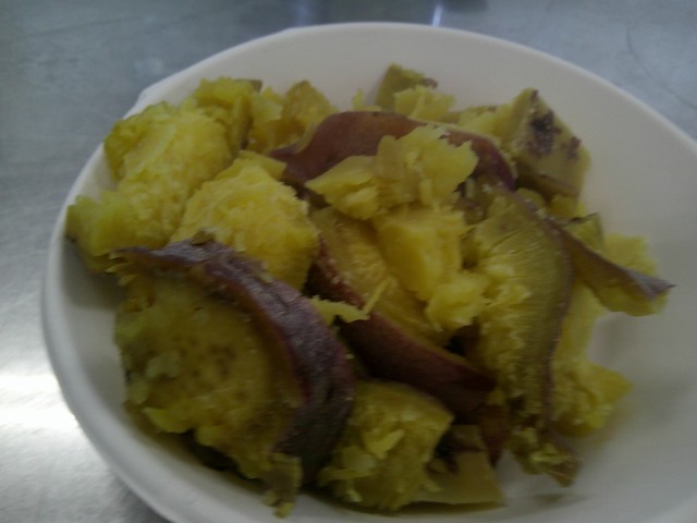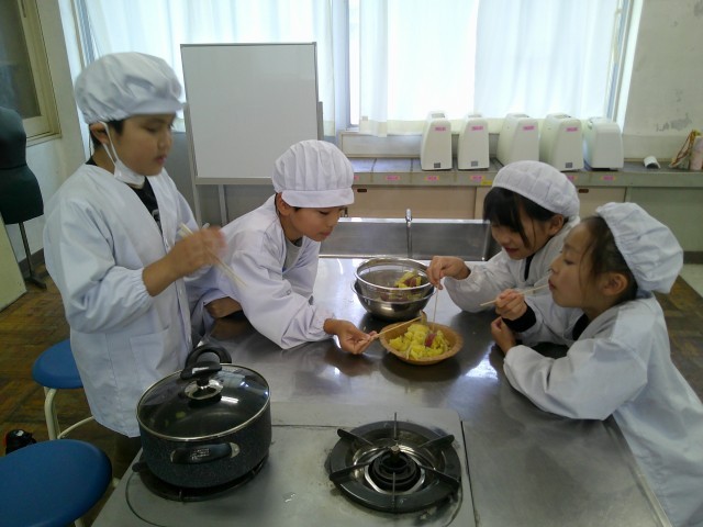 3年生の総合的な学習の時間では、さつまいもの食べ比べを行いました。今回比べたのは「紅はるか」と「紅あずま」という2種類のさつまいもです。まず、茹でる前に見た目の違いを観察しました。紅はるかは細長くてつやがあり、紅あずまはずんぐりしていて色が少し濃いように見えました。さつまいもを茹でて食べてみると、紅はるかはとても甘く、しっとりとした食感でした。紅あずまはほくほくしていて、やさしい甘さがありました。どちらもおいしくて、みんな笑顔になりました。食べ比べをしてみて、同じさつまいもでも種類によって味や食感がちがうことに気付きました。今回の学習を通して、身近な食べ物にもそれぞれのよさや特徴があることを知ることができました。