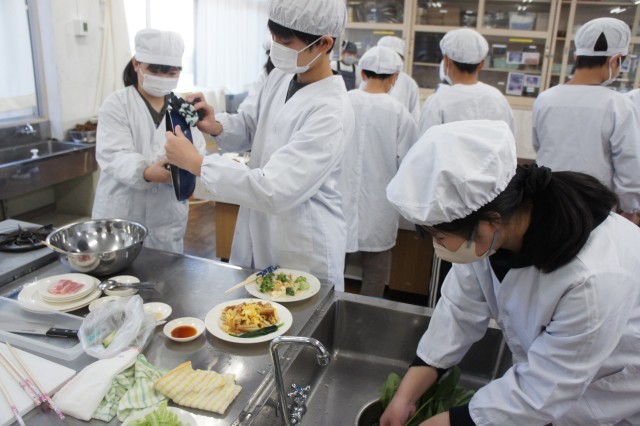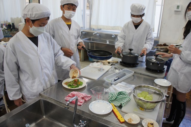 6年生が家庭科の授業で調理実習を行いました。今回は、「家族の心も体も喜ぶ一食分の献立を作ろう」というめあてで、主菜か副菜を調理する実習を行いました。個人で計画を立てて、調理を行いました。メニューの一つには、アスパラのベーコン巻がありました。アスパラの下ごしらえを丁寧に行い、きれいにベーコンで巻き、焼き色もおいしそうに仕上がっていました。安全においしく調理することができました。