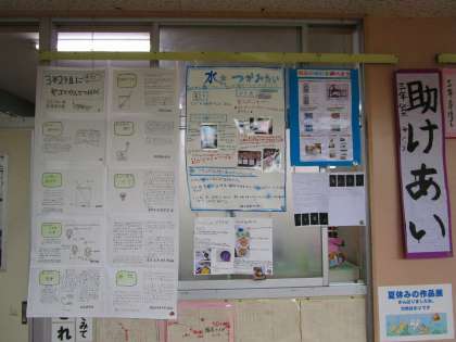 夏休みに、子供たちが取り組んだ作品を教室廊下に掲示しています。