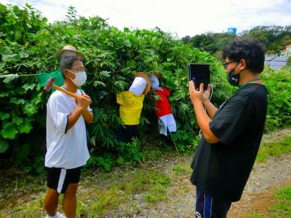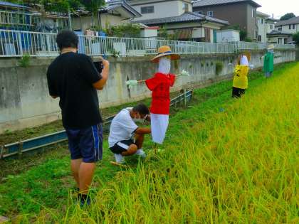 臨時休校になってしまったので、今日はライブで「かかし立て」の様子を中継しました。