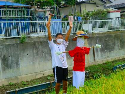 本来であれば、子供たちと一緒に長堀小の青空農園に出向き、6年生から5年生へのプレゼントとして、かかしを立てる計画がありました。