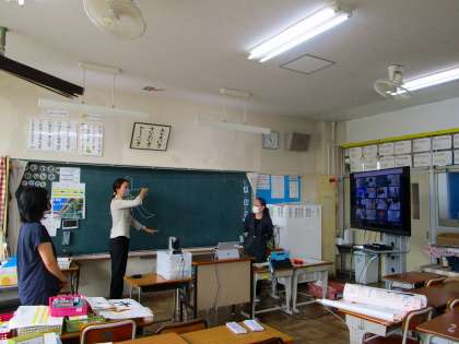 ※写真は、指導している教室の様子です。2台のカメラで撮影しました。