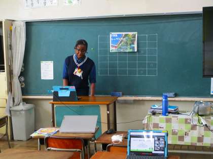 How are you?の問いかけに、Fine!と元気よく返している声が聞こえてきました。久しぶりにジェナ先生と再会できて、みんなニコニコでした。